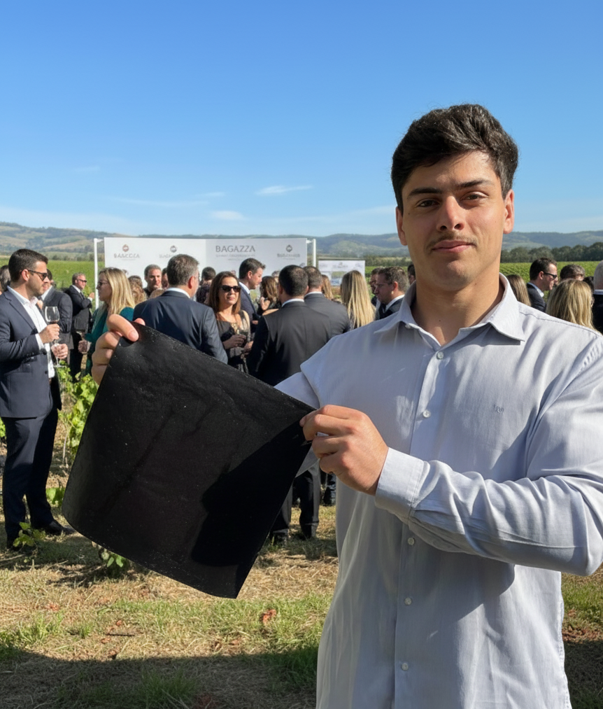 Cada etapa en la creación de Bagazza refleja innovación y respeto por la naturaleza. Desde la cuidadosa recolección del orujo de uva hasta su transformación en una piel vegetal de alto valor. El recorrido encarna la circularidad: convertir lo que era desecho en moda con valor y propósito.